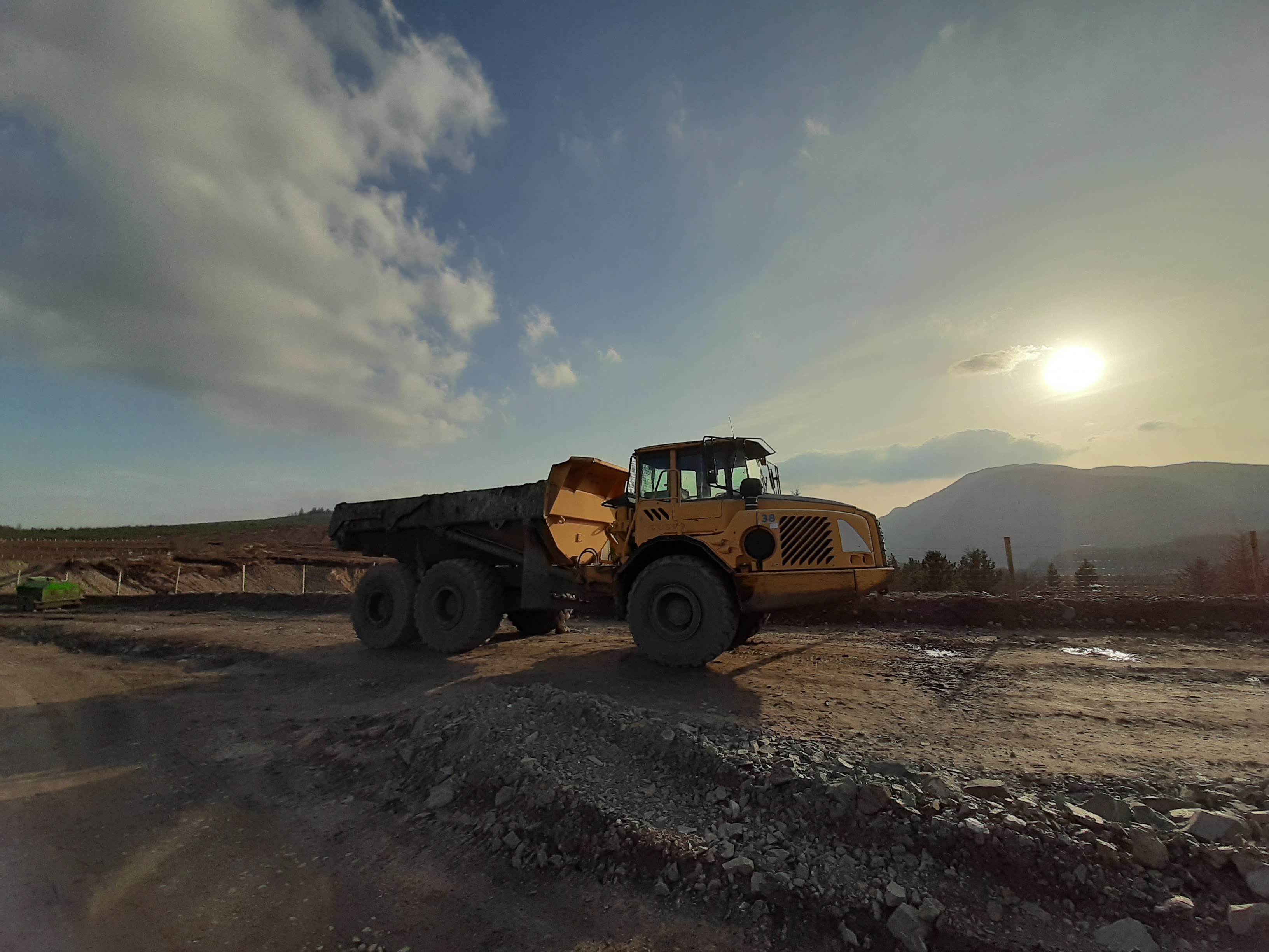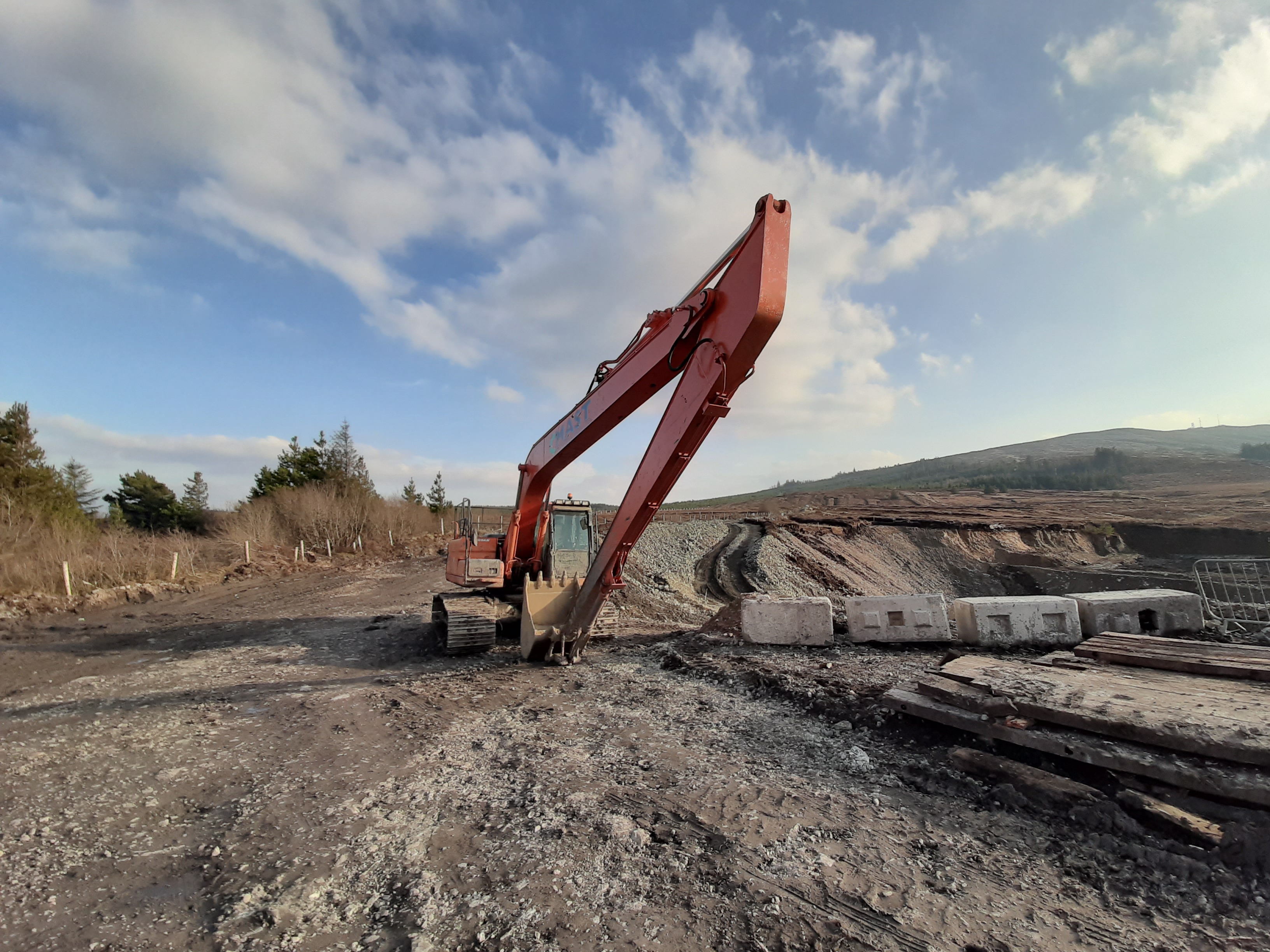 I was aware of the works in the forest as there is a construction company installing a windfarm. On my last visit they were working between the summit and the quarry with minimal security at the quarry end but safe enough as the site shut down for the weekend. Big change now! The works have spread out along most of the main trails with massive sections quarried out to provide stone for the widening of the trails for increased access for construction vehicles. Most of the trails have changed from potholed gravel and stone to chunky hardcore and rock. Where the vehicles have been working and travelling the trails are a mixture of smooth and some rock but the newer sections are very rocky making the going particularly difficult.
