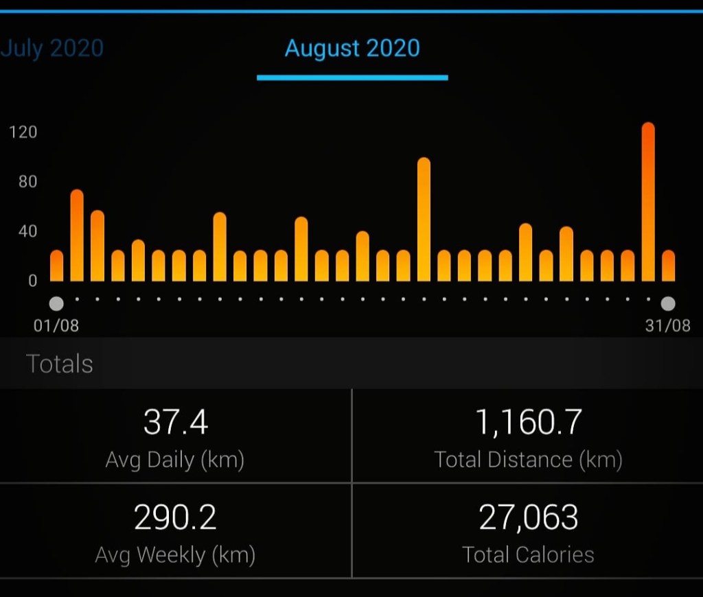 My Saturday morning 25km took me past my first challenge marker of 1000km for the month finishing with 1007km.