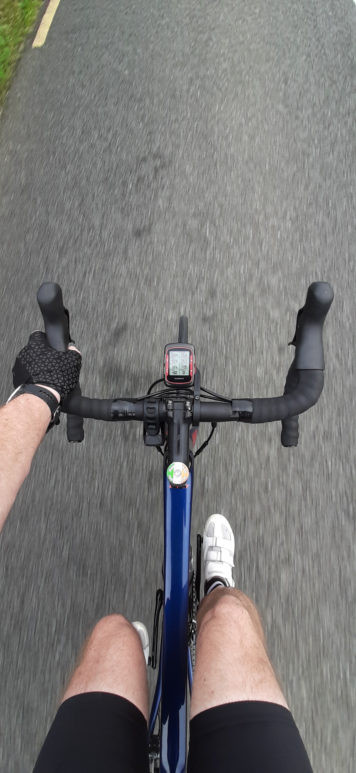 I didn’t intend to even try going out Tuesday morning as this was the worst of the rain and wind. I did waken as usual but the rain was battering off the roof. The rain continued for most of the day while I was at work and I’d pretty much decided I wasn’t going to be able to get out at all. Once home though I decided it was starting to fair up slightly and decided to give it a go. Even a short run would have been enough to keep my streak going. In the end the rain was constant but the wind was bearable coming from the South and I completed my normal 25km circuit. Riding in the storm felt almost as big an achievement as the mileage and streak challenge!