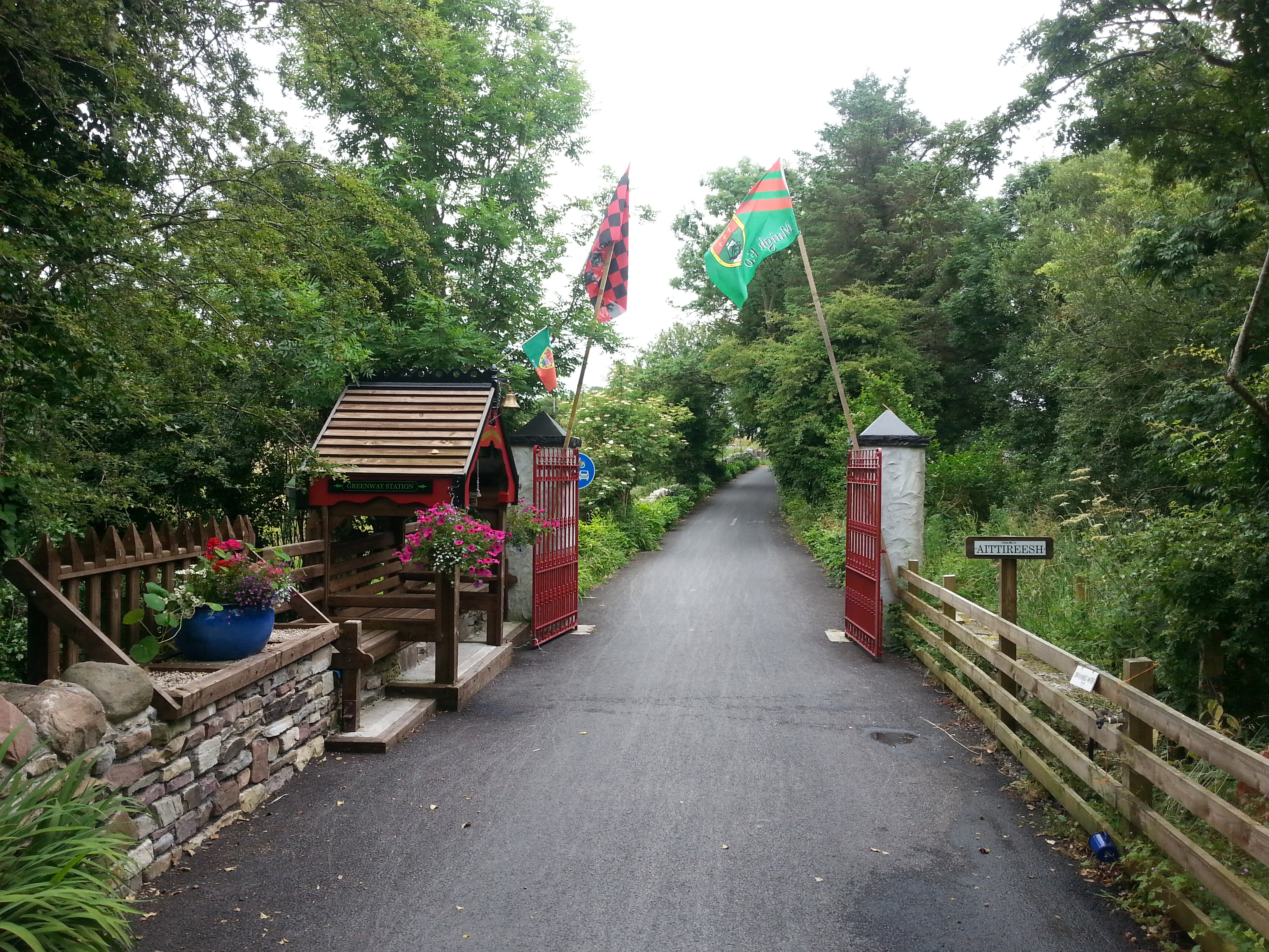 The last few times I’ve always had route issues with Ballymoney but not this time. Last time I figured that the route left the road and went through a riverside park using cycling paths. This spits you out on a main road in the middle of town and this time I realised how the cycle path picks up again across the road and through a small housing area. Another riverside park that conveniently brought me out close to a small retail complex including a shop deli with 105km done.