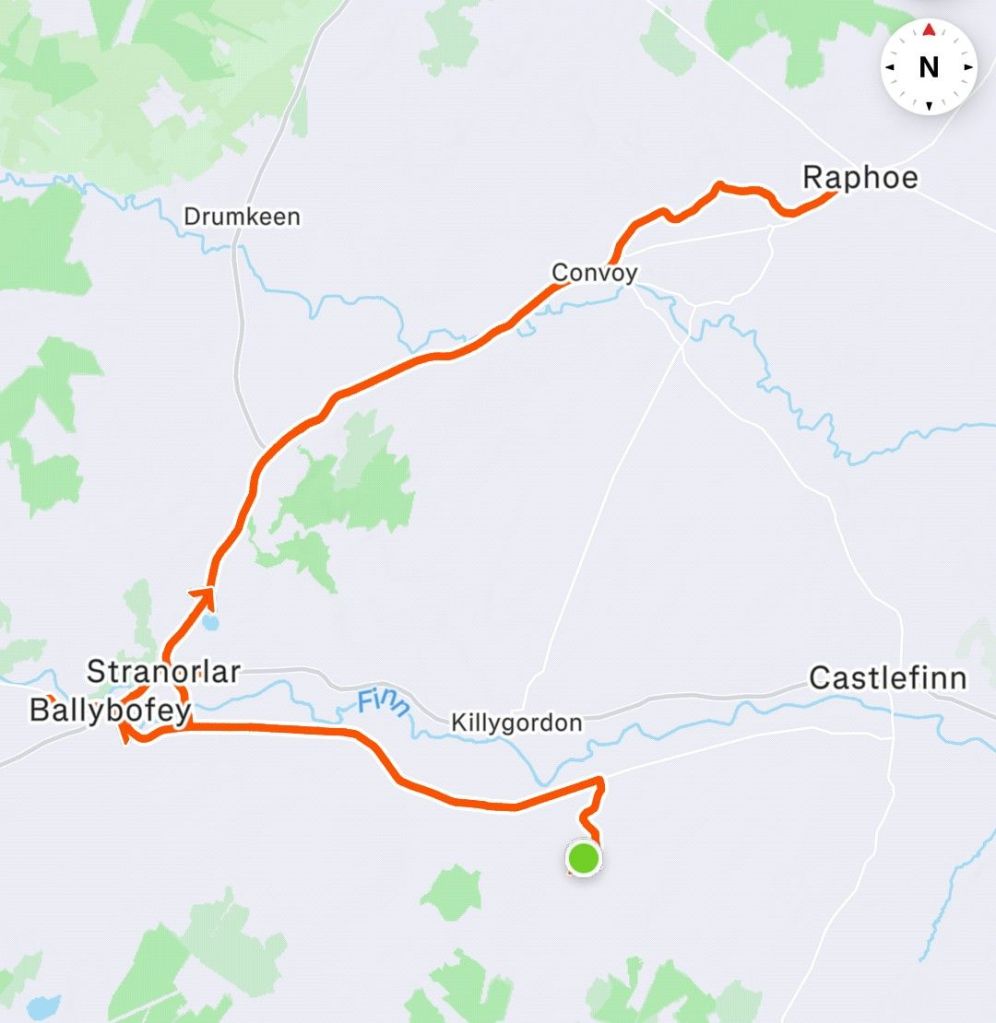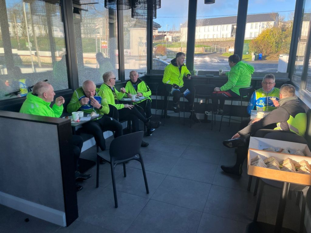 In total we had 15 members out which was really good considering the conditions. We went to Raphoe for refreshments sponsored by the club and returned the same route, making the safe decision to stick to gritted roads. We had also delayed the start from 9:30am to 10:30am to let the roads clear a bit.