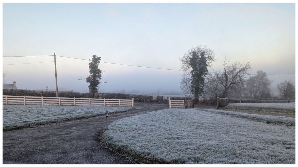 With yesterday’s temperature not getting much above 1/2°C it left everything looking white and crisp this morning…