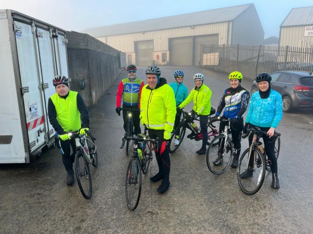I cycled up to meet the group to see how I felt. It’s 11km so long enough to identity any problems. It was a cold but dry morning with fog rising from the river and quite thick in around Ballybofey. You can see it behind us in the group photo above.
