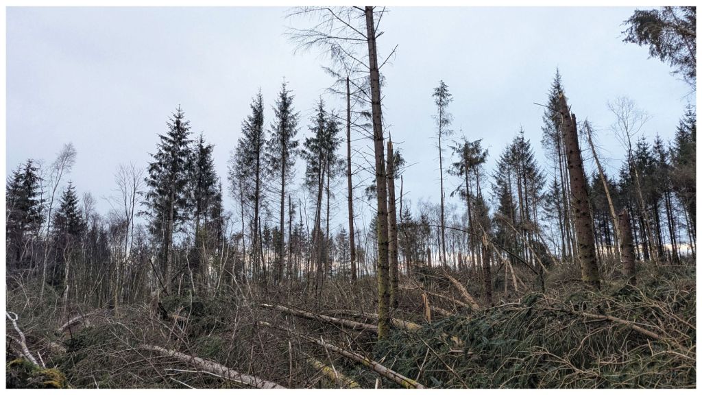 The startling evidence of the power of the storm isn’t the number of downed trees. I’ve seen footage of other forests and it was expected. What wasn’t is the number of trees simply snapped like matchsticks. A very small part of me would like to have been there to experience the sheer power of the wind but it must have been terrifying also….