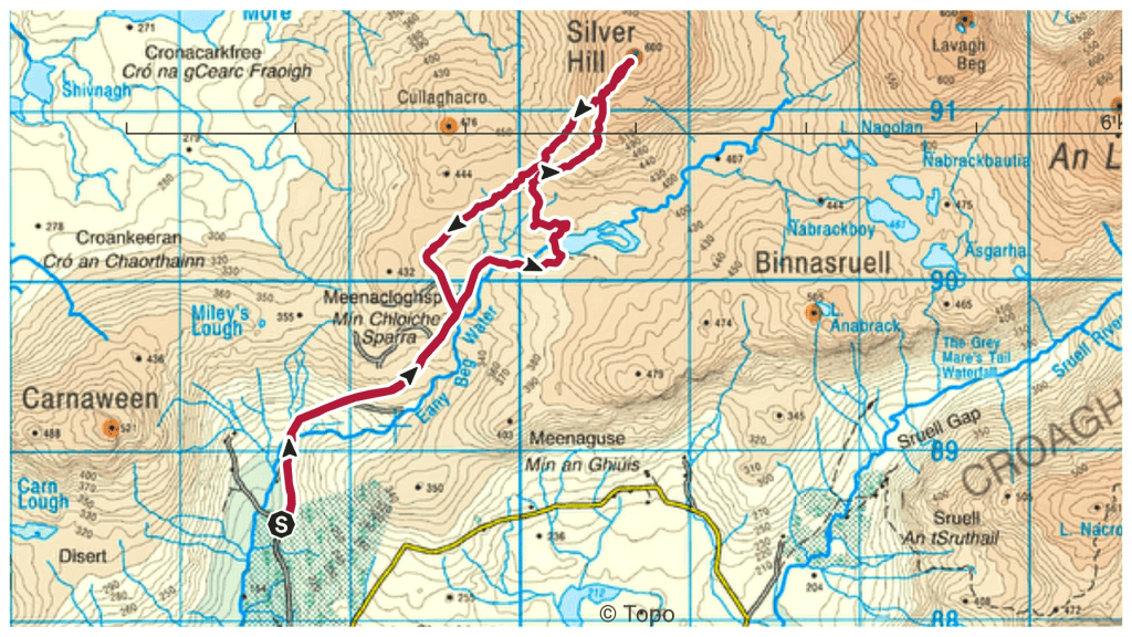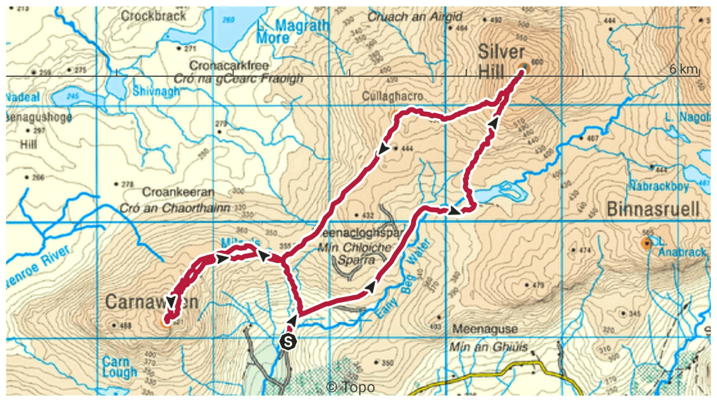 Silver Hill is definitely a summit I’d like to go back and revisit in a different season. Gerry McVeigh has a video of a wild camp on the summit as part of a longer two day hike in May this year. It’s a bit adventurous for me but I think the loop taking in Lavagh Beg and Lavagh More from Silver Hill would be manageable.