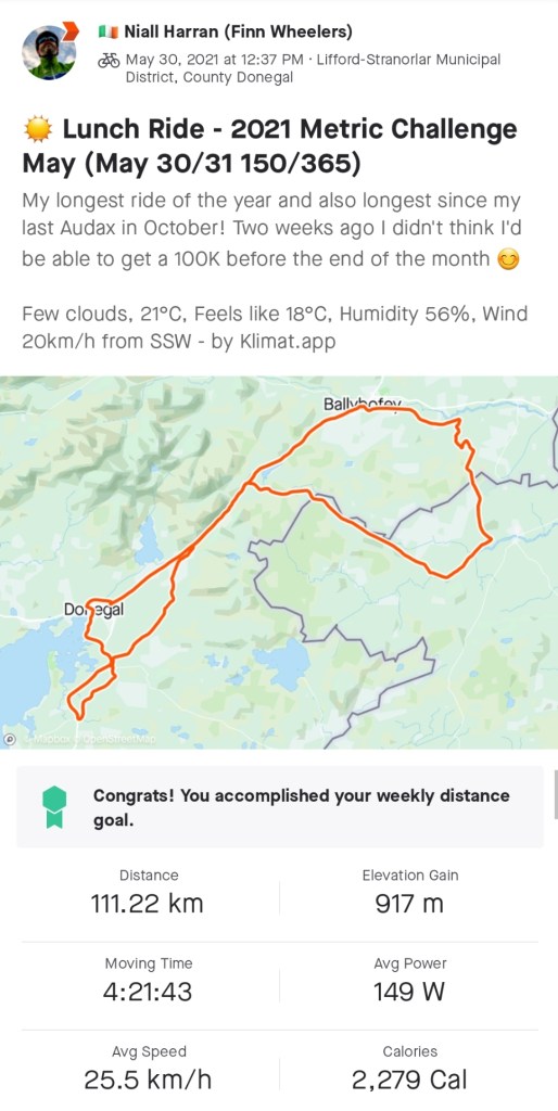 This weekend is another Bank Holiday in Ireland and I’ve also booked some holiday days so I’m hoping for some more good weather and at least 2 longer distance spins.