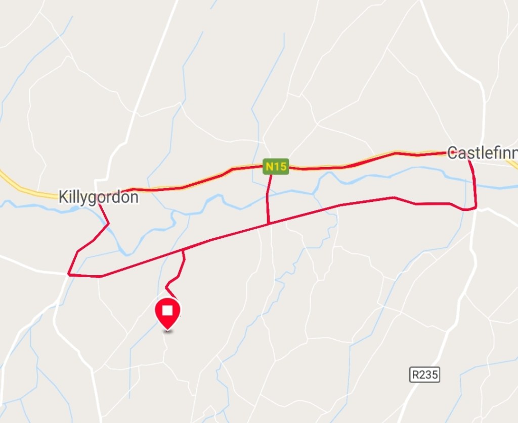 As an additional bonus I was able to finish the final loop slightly shorter, avoid the climb up from Liscooley Bridge and stay on the main road all the way from Castlefinn to Killygordon.